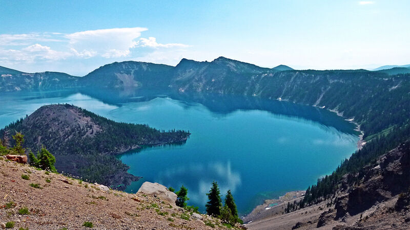 Facing the sea in the morning mist, along the coast road to north, and then enter Oregon State. Arrive at Crater Lake In the afternoon, it like a bright sapphire, set at an altitude of 3700 meters on volcano. Stay overnight at Klamath Falls.